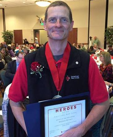 Matthew Brittain, Red Cross volunteer and professionally trained EMT, responded to a home fire to provide Red Cross assistance. While speaking with the family, Matthew noticed the father was having difficulty breathing and his 2-year old daughter was struggling as well. Matthew called for the paramedics and the family was quickly taken by ambulance to the hospital for treatment of smoke inhalation. According to doctors, had the condition gone unnoticed for even two more minutes, the young girl may have lost her life.