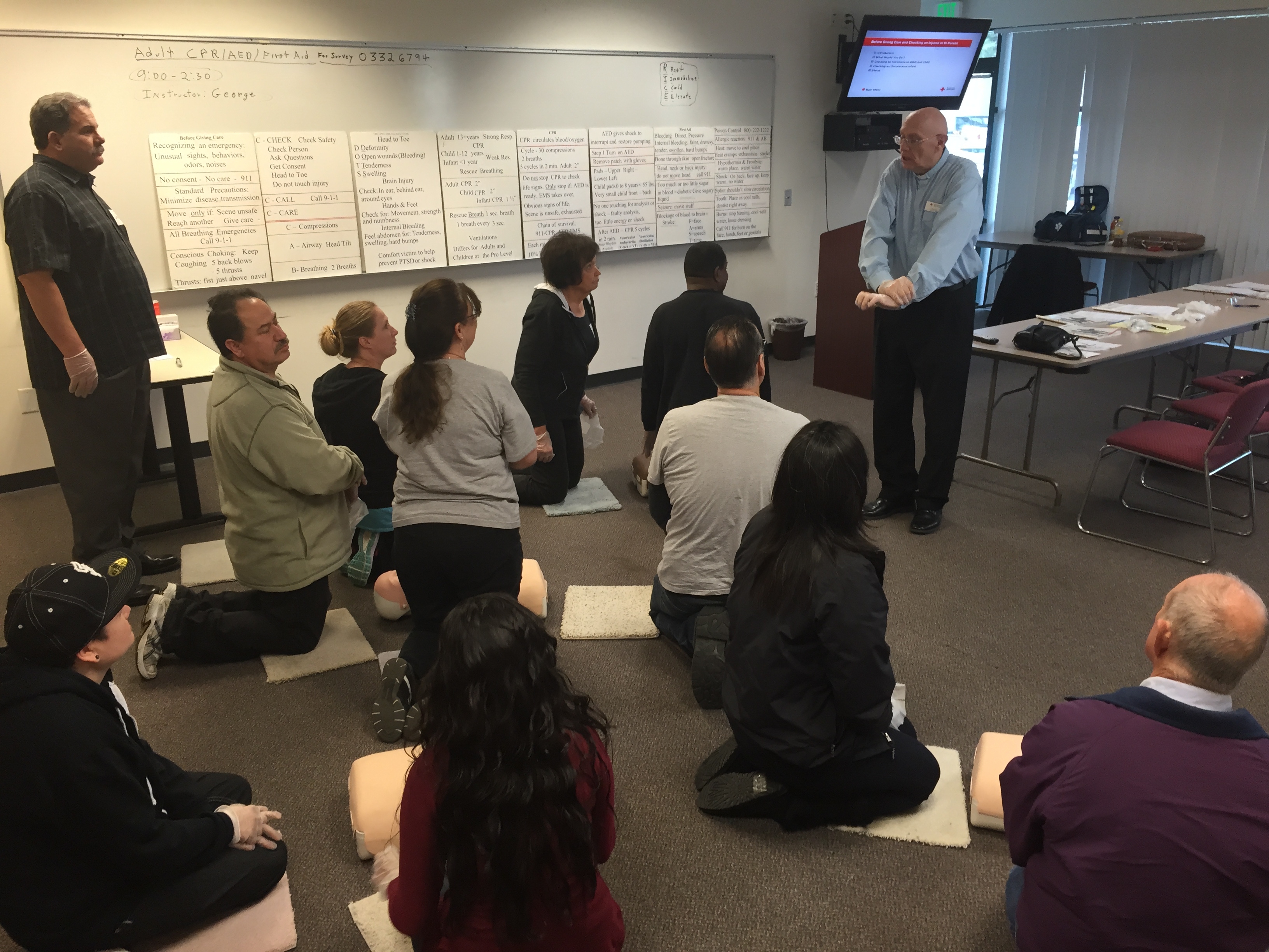 From that point on, George began taking additional classes and learning on his own so that he could become a certified Red Cross instructor. After plenty of studying and co-teaching his early classes with another instructor, George was off and running!