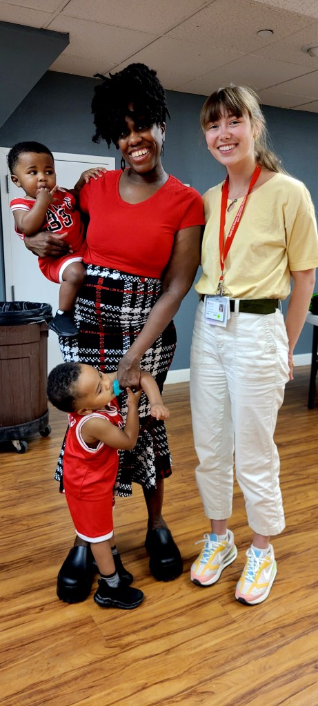 Tashamia Barrow, with her sons, Ike and Isiah, talks to Hope Media of the Cayenne Wellness Center. (Photo by Laurie Puglia)