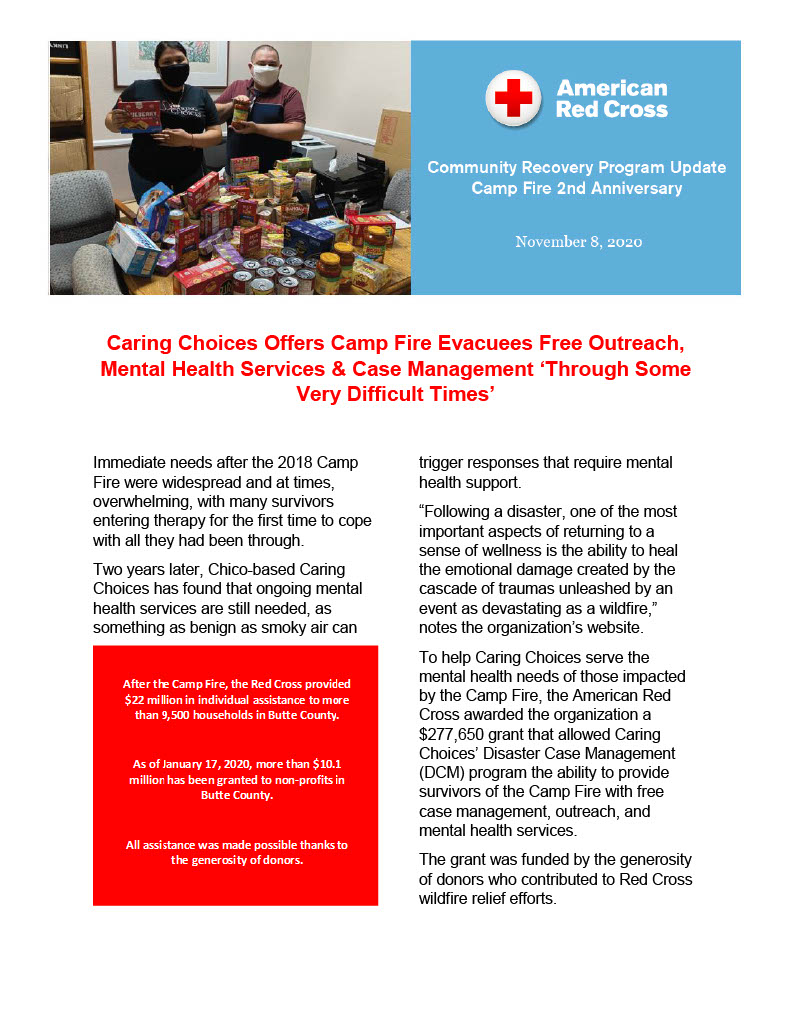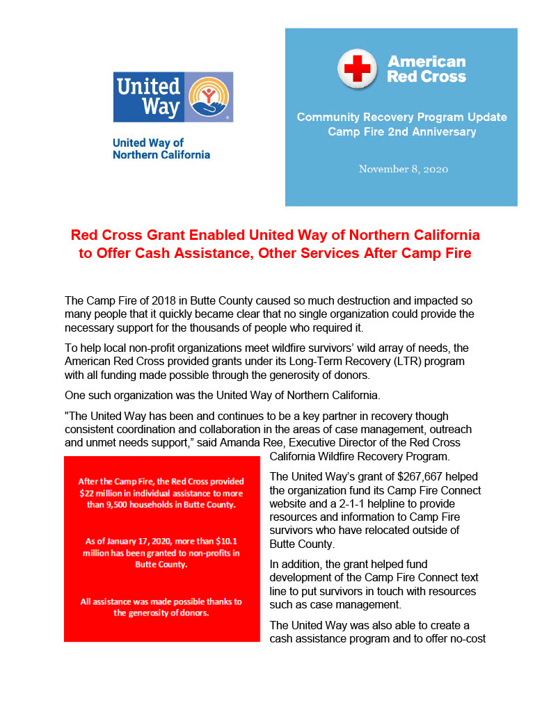 After the 2018 Camp Fire, The American Red Cross California Gold Country Region was able to award more than $10 million in grants to a select group of non-profits in Butte County to help them continue to serve the wide array of needs presented by Camp Fire survivors.