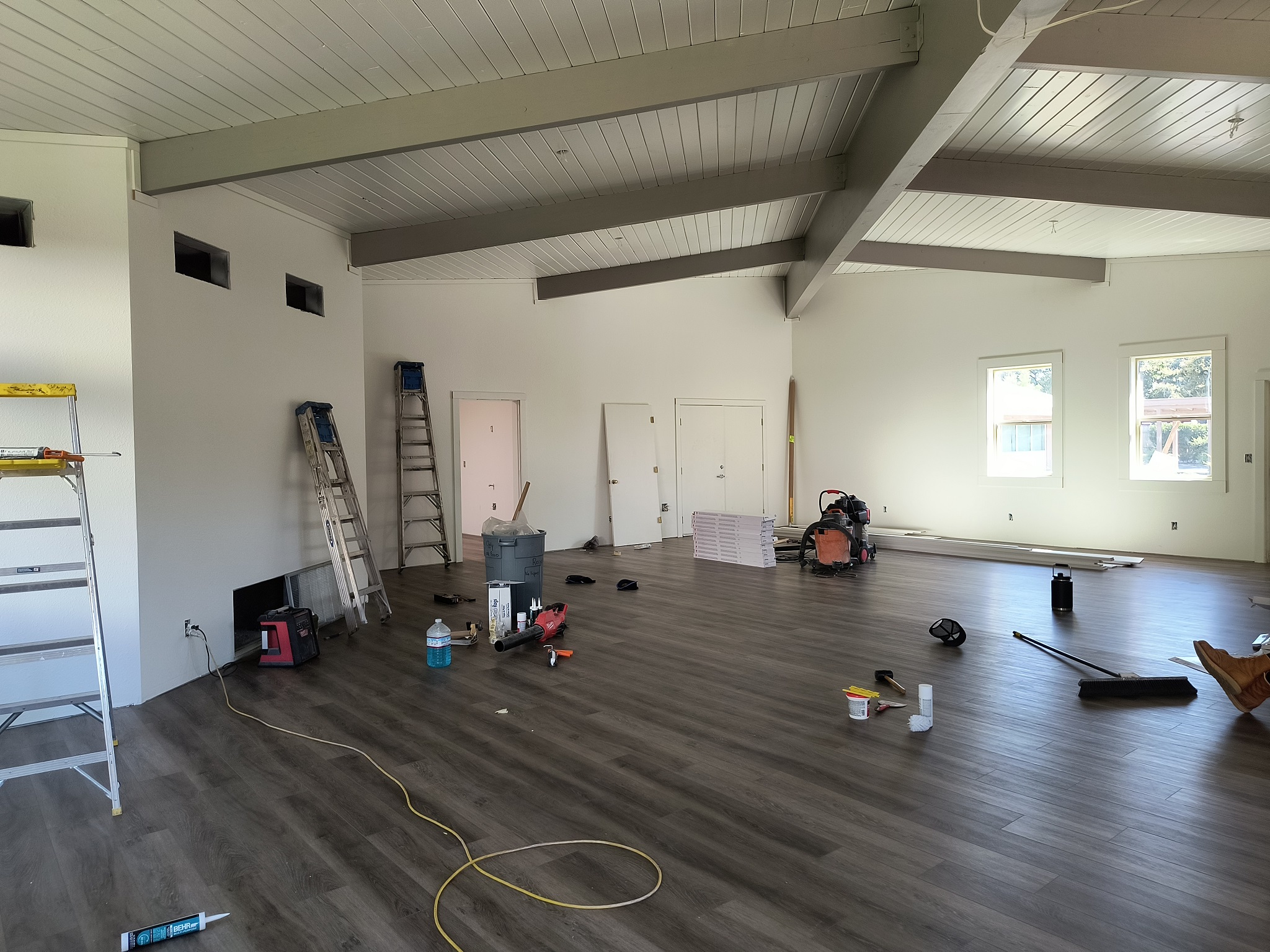 “We just installed the last piece of hardwood flooring!” they said as I walked into the hall. Sherry Wallmark, parish church administrator of St. John’s Episcopal Church in Chico, said the two-man team of certified contractors, from LaFontaine Construction and Wolfe Construction, completed the remodel within the allotted timeline—and amid excessive summer heat.